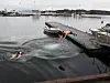 TYSNES VINTERBADING: Ole Chr. Kjerrgård har stupt uti. Rasmus Holm Lunde tek sats. (Alle foto: Ole Skaten)