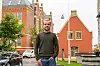 DET JURIDISKE FAKULTET: Eirik Hodneland står utanfor Det juridiske fakultet i Bergen, kor han skal starta på fjerde året som jusstudent. Alle foto: Hanna Moberg Rosland