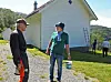 MIMRESTUND: Oddvin Alfarnes (t.h.) hadde teke turen frå Bergen for å vera med på dugnad, på huset der han både gjekk på skule og vaks opp. Her i mimrepause med Bernhard Skjolde.