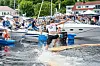 SPEKTAKULÆRT: Mange fann seg ein plass i hamna med god utsikt til palleløpet under Tysnesfest i fjor. I år returnerer konseptet der det gjeld å koma seg heilskinna gjennom palleløypa. (Arkivfoto: Øyvind Bjerkestrand)