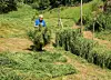 TEK VARE PÅ TRADISJONAR: Helge Drange inviterte «Tysnes» til gards for å vidareformidla gamle kunnskapar om hesjing og oppsetjing av hes. (Alle foto: Ole Skaten)