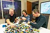 VANLEG DAG PÅ JOBB?: Kulturkontoret-trioen Øystein Vaage (t.v.), Sabine Koch og Jostein Sydnes er sjølv for gamle til å delta på First LEGO League, men dei håpar mange ungdommar frå regionen vil vera interessert i å delta til hausten.