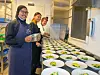 LÆRLINGAFTEN MED FEM RETTAR: F.v. Lærling Ayan Abdisalan Abdullahu, lærling i Equinor Aurora Søfteland og mandelhuskokk Kristoffer Heggland Turøy klargjer fyrste forrett: sjøkrepshale. (Alle foto: Ole Skaten)
