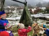 MARKERING: Utegruppa i Onarheim barnehage markerte samane sin nasjonaldag på torsdag. Pedagogisk leiar i avdelinga Storebjørn, Frid E. Kristiansen, med samisk hovudplagg. (Alle foto: Marianne Tvedt/On.barnehage)
