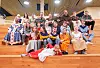 KOSTYMEPRØVE: Teatergjengen prøvde kostyme då «Tysnes» var på besøk. Dei tok seg tid til eit gruppebilete for lokalavisa. Bakarst frå venstre: Åshild Matre, Irene Skutlaberg, Marianne Tvedt, Kjetil Totland, Martin Restad, Ottar Clausen, Øyvind Skartveit, Kyrre August Skutlaberg Sjøbø og Kåre Martin Kleppe. Midten frå venstre: Richard Høie, Lilly Hustad, Leon Sæverud-Mehammer, Elina Sjøbø Borgen, Nora Lundevold, Thea Moss og Jostein Hatteberg. Fremst frå venstre: Konstanse Josefine Håheim Torsteinsdotter, Tuva Hauge Hansen, Olav Hillesvik Sorknes, Jenny Amland og Amanda Skutlaberg Sjøbø. Fremst, liggjande: Hanna Hustad. (Alle foto: Liv Lilleslett)