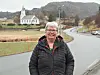 UTSIKT TIL KYRKJA: Frå utsida av kommunehuset, der kyrkjekontoret er plassert, kan Marit Isaksen Espedalen og dei andre kollegaane sjå Uggdal kyrkje i bakgrunnen.