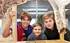 SKAR I VEG: Tre blide karar som likar seg godt i friluftsliv-valfaget. Og der iallfall to av tre syntest det var spennande å få prøva seg med kniv på ein lammeskrott.