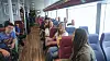 MODSFANS: 18 tysnesingar har teke turen med hurtigbåten til Stavanger. Blant desse er Sara Elisabeth Stue på første rad (t.h.). Malin Kongsvik på rad to. På rad tre sit Anne Marie Kleppe og Martin Restad. Steffen Sleire Opdal og Helge Flornes sit på rad fire, og bak dei sit Bjarte Frugård. Framme til venstre sit Sindre Økland. (Foto: Hans Christian Haaland)
