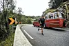 ULTRALØP: Peter Tubaas spring 150 kilometer i veka. Sist laurdag sprang han rundt Tysnes. Her frå Holmalio, der møtte han ein gamal buss. (Privat foto)