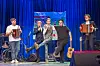 NORSKE KLASSIKARAR: Elevane løfta stemninga med musikalske innslag som «Gniar'n» av Vinskvetten under den årlege 10.-klasseframsyninga i Vonheim. F.v.: Ole Hauge Hansen, Aleksander Skaaheim Lunde, Jostein Hatteberg, Ruben Jankov Heggland og Kyrre August Skutlaberg Sjøbø. (Alle foto: Sara Haizoune)