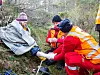 ØVING: Celin Røssland (9) er utplassert markør med skada fot på øvinga til Tysnes Røde Kors Hjelpekorps. Erling Langballe (i midten) og Rolf Røssland bandasjerer den skada foten. (Alle foto: Ole Skaten)