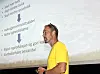 HAR OPPSKRIFTA: Magnus Frøyen frå Norsk Hjortesenter var tydeleg i sin tale til jegerane på Tysnes