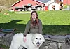 IRENE OG VARG: Ho er leiar av Tysnes bonde- og småbrukarlag, og meiner at årets jordbruksoppgjer ikkje heng på greip. Høggravide Irene Dalland er heller ikkje særskilt glad for at hjorten et opp fôret som skal fø ammekyra av rasen vestlandsk fjordfe. Difor har dei kjøpt Varg som snart er gamal nok til å jaga vekk hjort dag og natt.