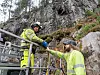 FJELLSIKRING: Julius Skarbalius (t.v.) og Kenneth Moberg frå Wimo er klare til å rydda fjellsida og bolta lause blokker.
