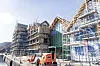 PAKKA INN: Alsaker Brygge er ein hektisk byggjeplass for tida. Gjenreisinga etter brannen har komme langt på berre eitt år.