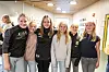 ENGASJERTE: Nora Lundevold, Sara Lundevold, Emilie Magnussen Hovdenes, Thea Lundevold, Ylva Dalland Helland og Emmy Aarvik Sjøbø-Borgen har bidratt med strikking, pianospel og kake til basaren. (Alle foto: Marthe Macody Tufte Lund)