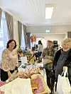 SMIL: Julemessa på Tveit var populær. Blant utstillarane var Solveig Horne, som selde heimelaga julevørterbrød, julebakst, syltetøy og meir. Systrene Kari Tysnes Kjos og Grete Johanne Tysnes Frøyseth sikra seg litt julebakst. (Alle foto: Anne Langeland)