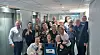 SYNLEGE PROV PÅ SUKSESS: Stemninga på hotellet i Stavanger var svært god, etter at Tysnes Musikklag gjekk til topps under Siddis Brass, seint laurdag kveld. Her er mange av gullvinnarane samla med pokal og banner, i hotellgangen i femte etasje på Clarion Hotel. (Foto: Privat)
