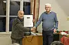 NY ÆRESMEDLEM: Leiar i sogelaget, Sigurd Bjordal (t.h.), overrekte æresmedlemdiplomet til Olav Skjellevik søndag.