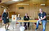 VALDAG: F.v. Kati Poder, Ingeborg Tysnes, Mathilde Søviknes Williamson og Årstein Aakre ønskte dei første veljarane velkommen. (Alle foto: Marthe Macody Tufte Lund)
