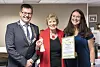 PRISUTDELING: Trine-Lise Aasen i frivilligsentralen og «stand in»-ordførar Arne Leite overrekte torsdag frivilligprisen til Eli Karin Johnsen.