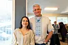 EIN SMAKEBIT: Viktoria Nechai og Serhii Vovk, i lag med fleire lokale ukrainarar, har lagt ned eit stort arbeid for å kunna gje dei frammøtte ein liten smakebit på ukrainsk kultur. Begge har på seg tradisjonelle, ukrainske klede. Alle foto: Marie Straume