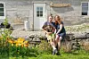 IDYLL: Anders og Irene Dalland, med sjefskatten Mosso, i ein sjeldan augeblink der begge sit i ro (sjølvsagt på fotografen sin ordre). I bakgrunnen ser ein underetasjen av huset, der dei populære kjøtprodukta frå garden blir produserte og pakka. (Alle foto: Randi Kleppe)