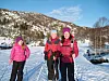 PÅ SKITUR TIL TYSNES: F.v. Helene, Ida og Edith Bøe er på hyttetur til Tysnes. Laurdag nytte dei dagen på ski. Her er dei i skianlegget ved Løkjen.