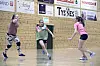 I FARTA: Petra Sløgedal (i midten) gir full gass på trening. Emma Marie Elgsås (t.v.) og Mia Nes prøver å stansa den kjappe vingen.