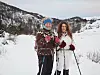 PÅ SKITUR: Eli Sandvik og Hanne Tysnes fortel om ein fin skitur til Gjerstadstølen. Laurdag var det Eli som lokka Hanne ut på vinterbading. Søndag var det Hanne som lokka Eli med på skitur. (Foto: Ole Skaten)
