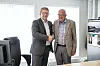 VIKTIG AVTALE: Banksjef Dag Sandstå (t.v) og leiar i Njardar/Tysnes, Helge Hauge, er godt nøgde med å ha signert nok ein sponsoravtale.