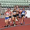 ELITEN: Pernilla Eugenie Epland (159) i felt med fire av dei beste 5000 meter-løparane i Norge på Bislett stadion. Frå venstre fartshaldar Runa Skrove Falch, Vienna Søyland Dahle, Pernilla E. Epland og Mariann A. Roe. Sist i gruppa ligg Maria Sagnes Wågan. (Foto Kondis/Kjell Vigestad)