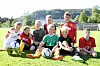 KJEKT MED FOTBALL: F.v. William Raknes Leite, Kristoffer Gjerstad, Marius Sjøbø, Thomas Hatteberg Olsen, Daniel Sandal Bjoarvik, Georg Siglevik Lunde, Erlend Heggland og Atle Husstad kosa seg på Tine fotballskule i dag.