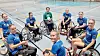 SESONGSTART: Seniorlaget sin første kamp i haust blei spelt i rullestol. Frå venstre: Sara Reimdal Vee, Tora Nødland Austvik, Renathe Hagen-Lunde, Isarlin Cristal Martinez Guzman, Thea Sløgedal (trenar), Ronja Sløgedal, Hanna Langballe og Martha Nødland Austvik. (Begge foto: Privat)