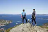 GOD UTSIKT: - Det er ein del båtfolk som tek turen til Ramnanuten, fortel Ingrid H. Haaland (t.v.). Her på toppen i nydeleg sommarvêr, saman med Monica Reimdal og hunden Felix. (Alle foto: Camilla Korsnes)