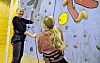KJEKK AKTIVITET: Eva Kalgraf (t.v.) syt for at Brita Austvik kjem seg trygt ned att ved å rappellera.
