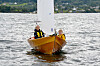 Nederlendaren segla innom Tysnes for å besøka Myrdal Gård - dreg igjen med nyskoren plank på dekk
