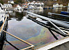 Dieselsøl i båthamna i Uggdal