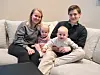 VALDE LANG UTDANNING: Veronica Vikøren Frugård og Ørjan Malkenes valde begge høgskuleutdanning. No har dei begge fått jobb på Tysnes, og i august flytta dei inn i nytt hus. Her saman med borna Julie (2) og Alvin (11 mnd).